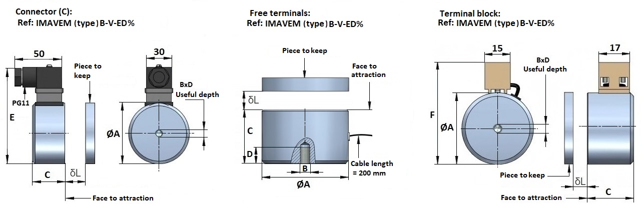 With connector, from the IMAVEM-50 model upwards. (Optional) – The connector has 4 options for positioning (4 × 90º) and is not suitable for alternating current (AC) voltage.